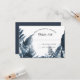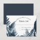 Adorável conjunto de convite de casamento com tema de floresta natural BOHO. Este é o cartão de resposta de RSVP que pode ser misturado e combinado com todas as cores e desenhos de folhagens e frondes de samambaia da Floresta. Azul azimute profundo com folhagem de aquarela azul Delft e branca. O lado reverso é um painel de cor azul marinho. Direitos autorais, Audrey Jeanne Roberts.