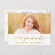 Cartaz fotográfico moderno de tendências convidando sua família e amigos para a festa de formatura de sua filha. Simples Dourado | Convite à festa de formatura para 2014. Design por Elke Clarke © Visite nosso compro www.zazzle.com/monogramgallery* para mais designs e estilos. Adicione sua própria foto e texto. Uma simples capa de texto de letra de folha de ouro escrita à mão (efeito fotográfico impresso) com a palavra "Formando 2014". Substitua a foto de exemplo por sua. Cor branca e dourada. Outros estilos e cores disponíveis.