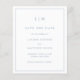 Um simples orçamento salve a data com um design moderno, mas elegante, com seu monograma de duas letras no topo e seus detalhes de casamento cercados por uma fronteira fina. Todos os elementos de design estão em azul empoeirado e podem ser alterados na ferramenta de edição de design. Um design chic e na moda que é excelente para um casal minimalista.