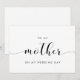 Um cartão de presente simples e minimalista para escrever uma mensagem pessoal e sincera para a sua mãe no dia do seu casamento. Totalmente personalizável com as suas cores favoritas (texto e fundo). Você pode adicionar uma mensagem no verso ou deixá-lo em branco se preferir escrever à mão sua mensagem mais tarde.