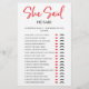 Ela Disse Que Ele Disse (O jogo do calçado do casamento) Jogo do Partido Chá de panela, simples design moderno com letra de script, preto e vermelho