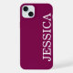 SIMPLES ELEGANTES CAPAS DE TELEFONE PERSONALIZADAS COM NOME COR VERMELHA ESCURA MODERNA PARA iPhone 15 PLUS ADICIONE SEU NOME AQUI CAPAS DE iPHONE PERSONALIZADAS SIMPLES ELEGANTES MODERNAS MINIMALISTAS DE COR VERMELHA.