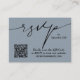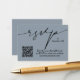 Estes modernos cartões de inclusão de casamento em azul poeira são uma maneira fácil para os seus convidados responderem no seu site de casamento. Inclua seu próprio código QR e site de casamento na frente e informações adicionais no verso (exclua nosso texto para deixar o verso em branco.) Itens CORRESPONDENTES em nossa coleção.