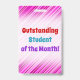 Este design simples e motivador apresenta a mensagem "Outsted Student of the Month!". Um crachá como este pode ser usado para encorajar um estudante. [~Z0000317]