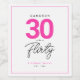 Uma simples etiqueta de vinho rosa, preto e branco "30 & Flirty Birthday Blend" personalizada com tipografia divertida e moderna. Personalize-o facilmente com a idade, o nome, o nome da bebida e o ano de nascimento. Perfeito para presente de aniversário ou favor de festa.
