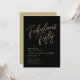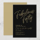 Convite de aniversário de 50 anos personalizado preto e dourado "Fabuloso Cinquenta" com tipografia moderna e sofisticada. Personalize facilmente com nome, idade e detalhes da festa.
