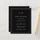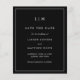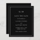 Um simples orçamento preto salve a data com um design moderno, mas elegante, com seu monograma de duas letras no topo e seus detalhes de casamento cercados por uma fina fronteira. Um design chic e na moda que é excelente para um casal minimalista.