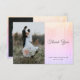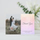 Casamento elegante "obrigado você". Este Modelo é uma placa de dois lados com um texto de script de tipografia escrito à mão. Esse roteiro e espaço branco dão uma sensação simples e minimalista. Personalize este cartão inserindo as fotos do seu casamento na frente e atrás, mudando os nomes e a data e editando a mensagem na parte traseira do cartão.