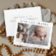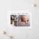 Um doce anúncio de nascimento de colagem de 3 fotos e obrigado a anotar um cartão com um simples tipo moderno e 3 fotos na frente. A parte traseira é um cartão postal endereçável com um cabeçalho de nome de cheio grande e uma mensagem pessoal da família. Clique no botão editar para personalizar este design com suas fotos e detalhes.