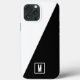Quando o clássico encontra elegância moderna! Esta na moda e elegante Capa de telefone monocromática em preto e branco é um imperativo para todos os amantes do minimalismo. Com triângulos geométricos, ela dividiu a capa de telefone em duas metades de elegância de constrição. Simples, mas, mesmo assim, na moda e tendências, esta capa de telefone irá proteger seu telefone de todos os altos e baixos, mas mostrará sua elegância, e virará a cabeça. A constância de cores entre branco e preto equilibra o monocromo de sombra e luzes, inspirada na cultura chinesa yin e yang. Essa capa de telefone também pode ser facilmente editável, pois apresenta as iniciais personalizadas da Tipografia retrorvintage, com tinta branca, para permitir que você adicione um pouco de brilho e ofereça a você, entes queridos.