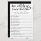 Quem melhor conhece a noiva a ser? Simples "Como Você Conhece a Noiva?" mantém o jogo de chá de panela com um divertido e casual roteiro escrito à mão. O clássico design inclui uma moderna camada de tipografia de aspas escritas à mão. Para outras cores ou produtos correspondentes, visite a loja justFharryn Zazzle ou entre em contato com o designer, c/o Fharryn@yahoo.com Todos os direitos reservados. #bohochic #zazzlemade