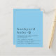 Simples quintal Bebê Q CHURRASCO Convite Azul num cartão postal conveniente. Muito espaço acima da tipografia para um toque contemporâneo. O cabeçalho da ocasião é grande em na moda com os detalhes na parte inferior. Personalize facilmente o texto para seus próprios detalhes. Clique em personalizar ainda mais para alterar as cores do fundo e da fonte, se desejar.