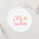 Branco macio, acabado com texto decorativo cor-de-rosa acompanhado de um cupido jovem. No verso, você pode personalizar com sua própria mensagem pessoal. A cor de fundo é personalizável.