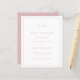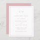 Um simples orçamento cor-de-rosa, empoeirado, salve a data com um design moderno, mas elegante, com seu monograma de duas letras no topo e seus detalhes de casamento cercados por uma borda fina. Um design chic e na moda que é excelente para um casal minimalista.