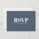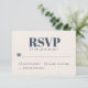Com um senso de simplicidade minimalista moderna, este design de cartão de resposta de casamento simples e elegante é apresentado na escolha de cor popular - azul-marinho e bege ecru claro. A frente do cartão tem um fundo bege ecru com texto azul-marinho e a parte de trás do cartão tem um fundo azul-marinho com texto bege ecru. Fonte tipográfica ousada e na moda escreve RSVP. Personalize a data de resposta necessária com a data necessária.
