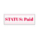 Este design de carimbo minimalista contém a mensagem "STATUS: Paid" (STATUS: Pago). Ele poderia ser usado para marcar uma fatura ou fatura como tendo sido paga no cheio.