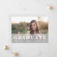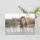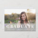 O anúncio de fotos da graduação moderna apresenta sua foto orientada para a paisagem de sangramento de cheio na frente, com uma camada branca pura, com "Formando" em letras brancas em negrito, assim como seu nome, escola e ano de graduação. Cartões que se revertem para um padrão de ikat sutil em cinzas de pomba e branco. Uma escolha elegante e moderna para os formandos de 2023.
