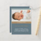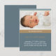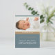 Anúncio de nascimento de fotos azul e tan. Personalize este modelo de cartão-postal moderno e na moda com a foto da sua menina e os detalhes para um anúncio de nascimento único.