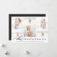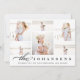 Cartão com fotos de feriado simples e elegante apresenta seis fotos em um layout de colagem, com seu nome de família e mensagem personalizada na parte inferior em cinzas escuras de carvão. Adicione uma foto adicional ao verso, juntamente com texto personalizado opcional adicional. Uma bela escolha minimalista que fará com que suas mensagens de feriado saiam do grupo.