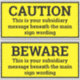 Dois sinais de aviso. Sinais de aviso do estaleiro. Altere o texto para exibir sua própria mensagem em cada um deles. Tamanho médio. 6 polegadas de largura.