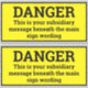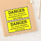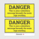 Dois sinais de perigo. Altere o texto para exibir sua própria mensagem em cada um deles. Tamanho médio. 6 polegadas de largura.
