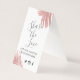 Redes sociais compartilhando hastes de hashtag de casamento com folhas tropicais de palma cor-de-rosa dourado e palavras personalizadas. Este MINI TENT CARD (do mesmo tamanho que um cartão de visita) é perfeito para um casamento de praia de destino tropical, ou chá de panela de praia, chá de fraldas, aniversário ou festa de aniversário.
