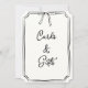 Este elegante modelo de estilo manuscrito apresenta um design desenhado à mão clássico com uma ilustração de arco caprichosa no topo. É apresentado num esquema clássico de cores preto e branco, perfeito para definir o tom para uma celebração única e chica.