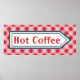Este sinal de Café Quente de xadrez vermelho é um ótimo item de decoração para qualquer quarto. Use esta impressão de estilo retrô como decoração de parede em uma cozinha, sala de jantar, restaurante, café, lanchonete, padaria, tema dos anos 50, tema dos anos 1950, etc... O design é de arte original.