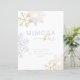 Vestir a sua estação de chá de fraldas de inverno com este elegante e empoeirado sinal de bar mimosa azul. Apresentando um guião de aspecto brilhante dourado e flocos de neve gelados, é o sotaque perfeito para a sua pequena celebração com flocos de neve. Uma forma na moda para guiar os convidados através da sua configuração de bolhas com charme sazonal.