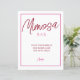 Crie uma atmosfera vibrante no brunch de sua Galentina com nosso 'Sinal de Bar Mimosa'. Este cartaz animado, adorado com elementos rosa e vermelhos, faz com que seus convidados se misturem e se misturem com mimosas deliciosas, acrescentando uma alegria à comemoração.
