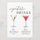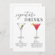 Este moderno e elegante cartaz de casamento para suas bebidas de assinatura apresenta um design minimalista, fonte de serifa clássica, fonte de script elegante e bebidas de aquarela. Edite os nomes e ingredientes de cada bebida para o seu casamento ou evento. Veja os itens correspondentes na coleção "Modern Elegant" e outras opções de bebida na coleção "Signature Drink Sign". *Envie-me uma mensagem se você quiser uma combinação de bebida personalizada. Entre as opções estão: Bliss on Beach, Bloody Mary, Bramble, Cosmopolitan, Cuba Libre, Dirty Martini, Espresso Martini, French 75, Gimlet, Gin e Tonic, Lemon Martini, Long Island Iced Tea, Mai Tai, Manhattan, Margarita, Mint Julep, Mojito, Moscou Mule, Old Fashian Con, Pina Colada, Sidecar, ou Strawberry Daiquiri.