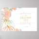 Flores cor-de-rosa e pêssego elegantes, com uma abóbora rosa e branca, com sotaques de ouro falsos.