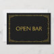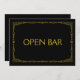 Sinal de casamento "Bar Aberto" em estilo art déco simples e elegante, personalizado com o seu próprio texto, apresenta uma moldura art déco dourada sobre um fundo preto.