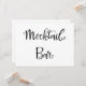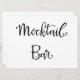 Um simples e belo sinal de "Bar Mocktail". Este sinal manuscrito pode ser usado para adicionar um estilo moderno nas recepções de casamento ou qualquer outra parte para indicar o bar do coquetel. NOTA ________________________________________________________________________________________________ Este é um sinal de 6,5" x 8,75", clicando no botão "personalizá-lo" que você pode acessar às ferramentas de design para alterar o tamanho e a forma, e também pode adicionar uma cor de fundo. Para combinar este sinal com o seu estilo de casamento, pode escolher entre 12 opções de papel únicas. Para uma sensação rústica, use a kraft artística, para adicionar um pouco de vidro, use o shimmer de pera. __________________________________________________________________________________________________