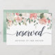 Indique o assento reservado no seu casamento com este sinal chic 5x7. Personalize com duas linhas de texto personalizado no roteiro de caligrafia e na inscrição em bloco moderna (mostrada com "Reserved" e o nome do convidado com assento reservado, com uma borda superior de flores de aquarela pastel e folhagem que corresponde à nossa coleção floral de noivos MidSummer.