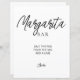 Comece a diversão no seu chá de panela com nosso cartaz de bar margarita. Projetado em estilo preto e branco minimalista, esse signo é perfeito para guiar convidados a uma experiência refrescante e festiva.