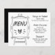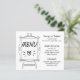 Avise aos seus hóspedes o que você estará servindo para comer com este divertido cartão de cardápio branco e preto. Você pode personalizar o menu com suas opções de comida, alterar fontes e cores para atender às suas necessidades. Menus pretos e brancos são perfeitos para * casamentos, chás de panela * eventos comerciais * cerimônias de prêmios * festas * feriados * angariadores de fundos/ instituições de caridade. Role para baixo para ver os produtos correspondentes que você pode desfrutar.