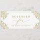 Elegante Vintage Dourado Sinal Reservado de Pena: Prendam esses símbolos elegantes de casamento de cadeiras, ou simplesmente coloquem o chão em uma cadeira. Este cartaz reservado para casamento apresenta um elegante design de moldura vintage em ouro. Para se meter em sinais pendurados, basta bater buracos no topo de cada lado e pendurar nas cadeiras de casamento ou urinar...ou simplesmente apoie-se num lugar de cadeira ao longo da sua decoração de mesa. Veja mais dos meus itens de casamento elegantes de ouro na coleção abaixo.