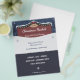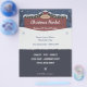 Um anúncio de panfleto para um mercado natalício local que se apresenta no topo, uma placa de madeira, coberta de neve e decorada com bolhas e um arco vermelho, tudo sobre fundo azul escuro. No meio e no fundo, há lugares para informações personalizáveis e alguns flocos de neve. Você também pode usá-lo como convite de festas ou janto!
