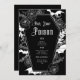 Aceite o encantamento com este elegante sinal de mesa de casamento gótico, perfeito para um casamento de Halloween. Esta design moderna e elegante combina uma estética boho-escura com uma vibração mórbida e assustadora, capturando a essência de uma celebração de outubro. Intrajado com teias de morcegos e aranhas, ao lado de delicados elementos florais, esse cartaz de bar apresenta uma paleta de cores preto-e-branco impressionante. Ponha o tom para o seu dia especial com uma combinação única de assombração da beleza e da elegância do eterno.