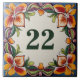 "placa personalizada de número de casa", "placa personalizada de casa sem placa", "placa de texto personalizada", "azulejo de cerâmica de flores havaianas", "flor de hawaii floral vermelha alaranjada", "arte vegetal de hibiscus verde", "natureza das férias de verão botânicas", "endereço postal poste", "sinalização de casa de feriado insular", "fronteira decorativa do paraíso tropical"
