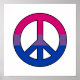 Poster com símbolo de paz design em cores com bandeira do orgulho da bissexualidade; faixas cor-de-rosa, roxa e azul, design de orgulho bi em fundo branco