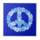 Um sinal de paz feito de delicadas sombras de flores azuis e brancas enfeita um fundo azul mais profundo.