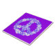 Uma placa de paz composta por delicadas sombras de flores roxas, lavandas e brancas adornam um fundo roxo.