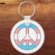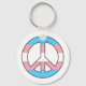 Chaveiro de Botão Básico com símbolo de paz design a cores da bandeira do orgulho transgênere, bandeira do orgulho de listras arco-íris, em fundo branco