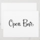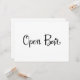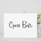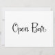 Um simples e belo letreiro de "Open Bar" em caligrafia. Este letreiro feito à mão pode ser usado para adicionar um estilo moderno em recepções de casamento ou em qualquer festa para indicar o bar de bebidas alcoólicas.