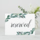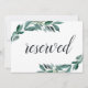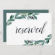 Indique o lugar reservado no seu casamento com este sinal botânico. Personalize com uma linha de texto personalizado na letra do script de caligrafia (mostrada com "Reservado"), formada por verde-aquarela e folhas de eucalipto.