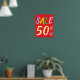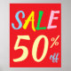 Sinal de venda de 50% numa paleta colorida. Você pode alterar a taxa de desconto usando a função "Personalizar Ti".