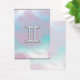 Uma mãe de pérola como o símbolo Gemini zodiac em fundo de fúcsia roxa e rosa suave. Um design moderno estilo feminino urbano para uma ideia personalizada de presente de aniversário para ela. Use o link "Perguntar a este Designer" para entrar em contato conosco com suas solicitações especiais de design ou para obter assistência com suas necessidades de personalização.