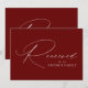 Símbolo moderno reservado com "Reservado" exibido em um roteiro elegante de caligrafia branca com fundo burgundy ou cor personalizada. Personalize o sinal reservado do script com seu texto personalizado (mostrado atualmente com "Família do Groom"). O design repete na parte de trás do sinal. Use o cartaz de casamento burgundy para reservar cadeiras ou mesas em sua cerimônia de casamento, recepção, janto de ensaio ou outros eventos especiais.